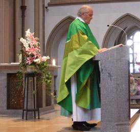 Pfr. em. Ludger Bügener versteht es immer wieder, die Freude über den Glauben in plattdeutsch lebendig werden zu lassen. In der Predigt spricht er in plattdeutscher Sprache über Lebenssituationen verschiedener Familien, z.B.